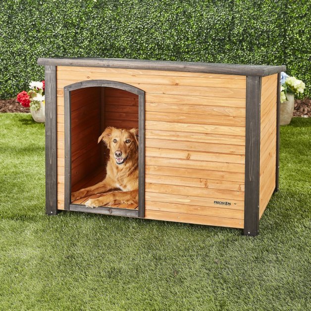 A tried-and-classic “traditional” dog house is the perfect outdoor space for any pup and is made with the necessary height to make sure your dog is both comfortable and snug. This is an incredible way and spot for your doggy to escape the sun or sleep.