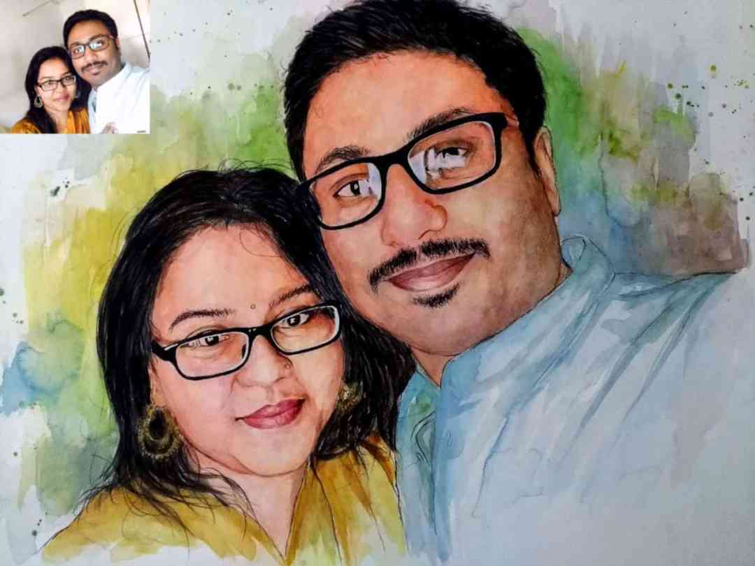 Authentic 100% Handmade Watercolor Painting from Photo made by the professional portrait artists. Each piece is unique & made with even the utmost attention to minute details.