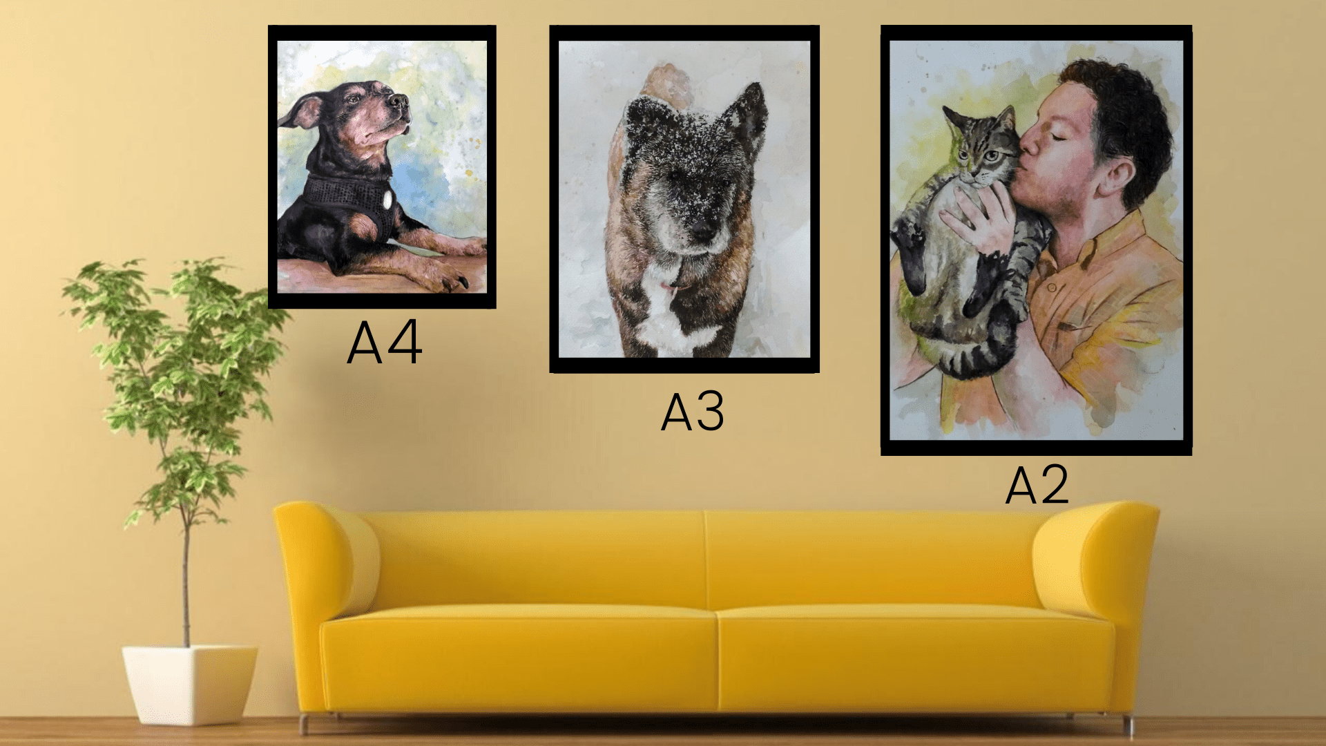 Authentic 100% Handmade Pet Watercolor Painting from Photo made by the professional portrait artists. Each piece is unique & made with even the utmost attention to minute details. Do you love playing with colors and splashing water on others? Our artists splash watercolors on your best pictures and convert them into a masterpiece, you never thought of!
