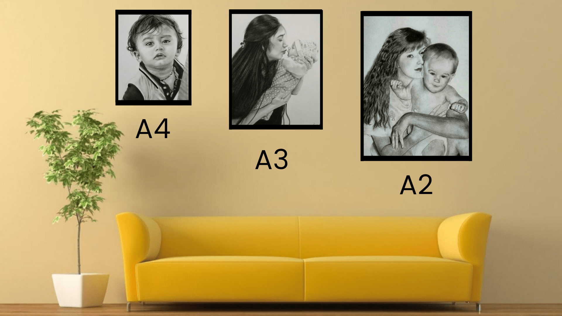 - Pick your Art Style among our wide range of products. Choose the size that you wish (A2, A3, A4) and the number of characters that you want in the portrait painting.