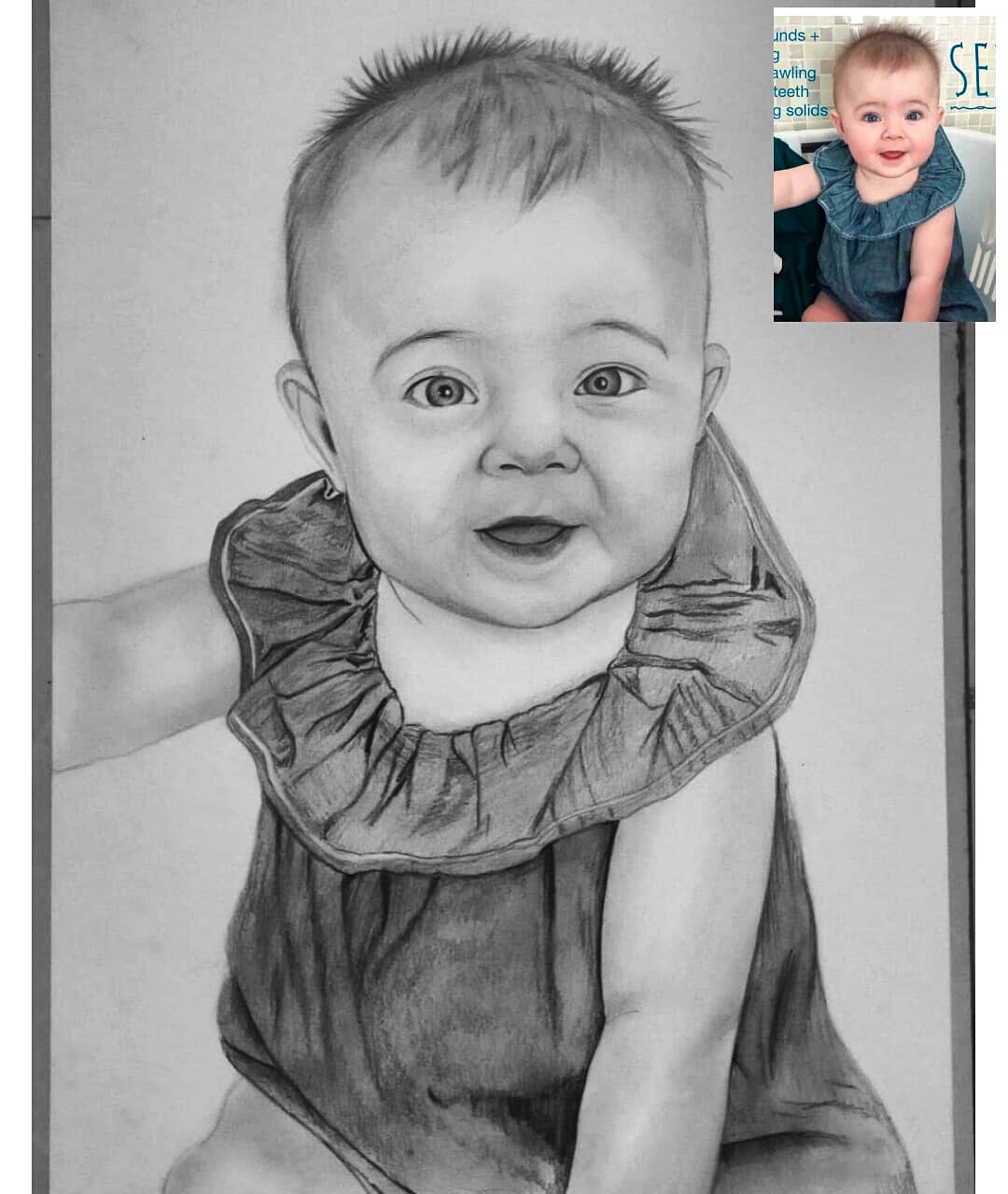 Authentic 100% Handmade Baby Pencil Drawing from Photo made by the professional portrait artists. Each piece is unique with even the utmost attention to minute details.