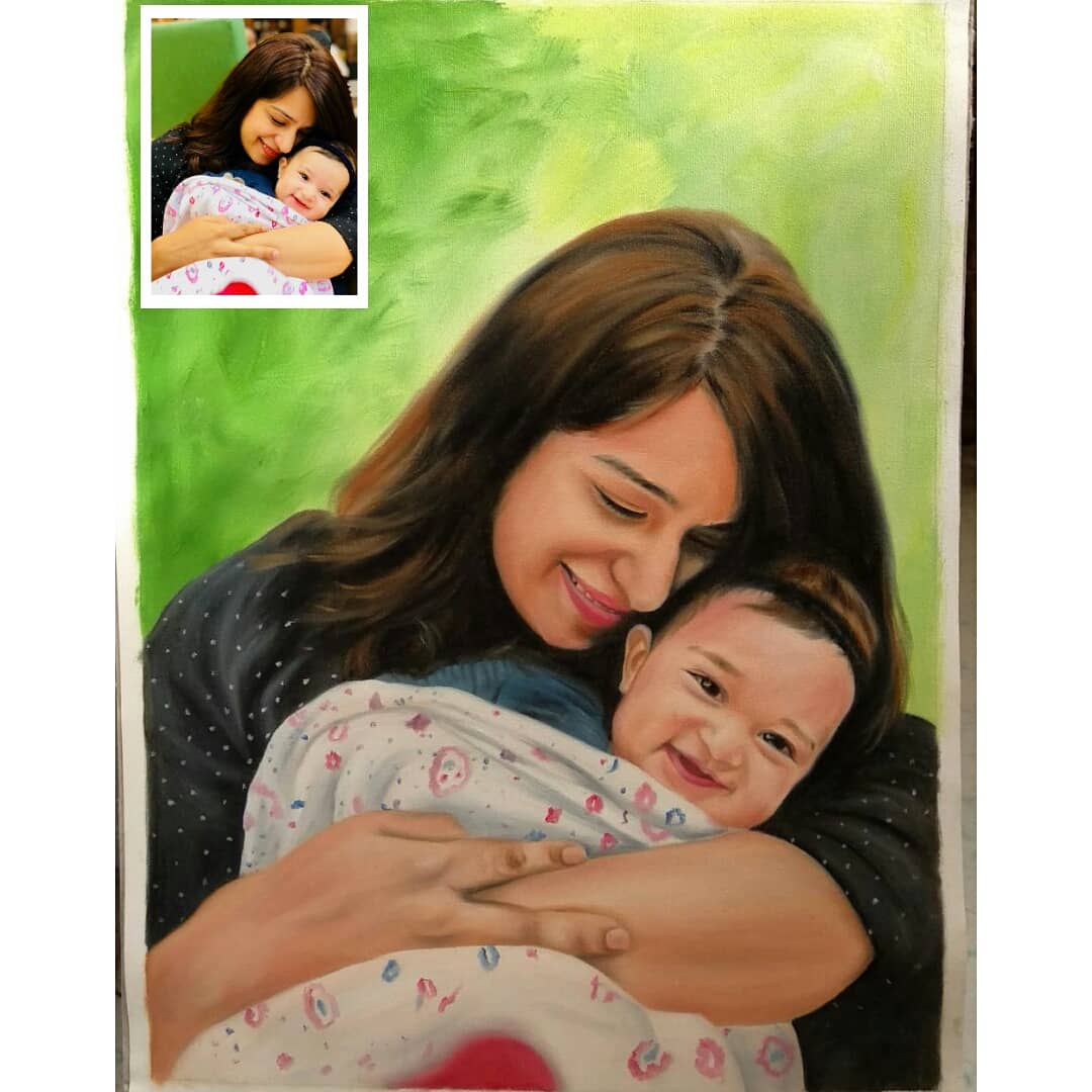 There’s always something special about the first child which definitely calls for a grand celebration. If you’re thinking to gift something cute and worth remembering to a 1-year-old baby, then what’s better than giving an Oil painting of the baby in her mother’s arms and make them go gaga over the gift.