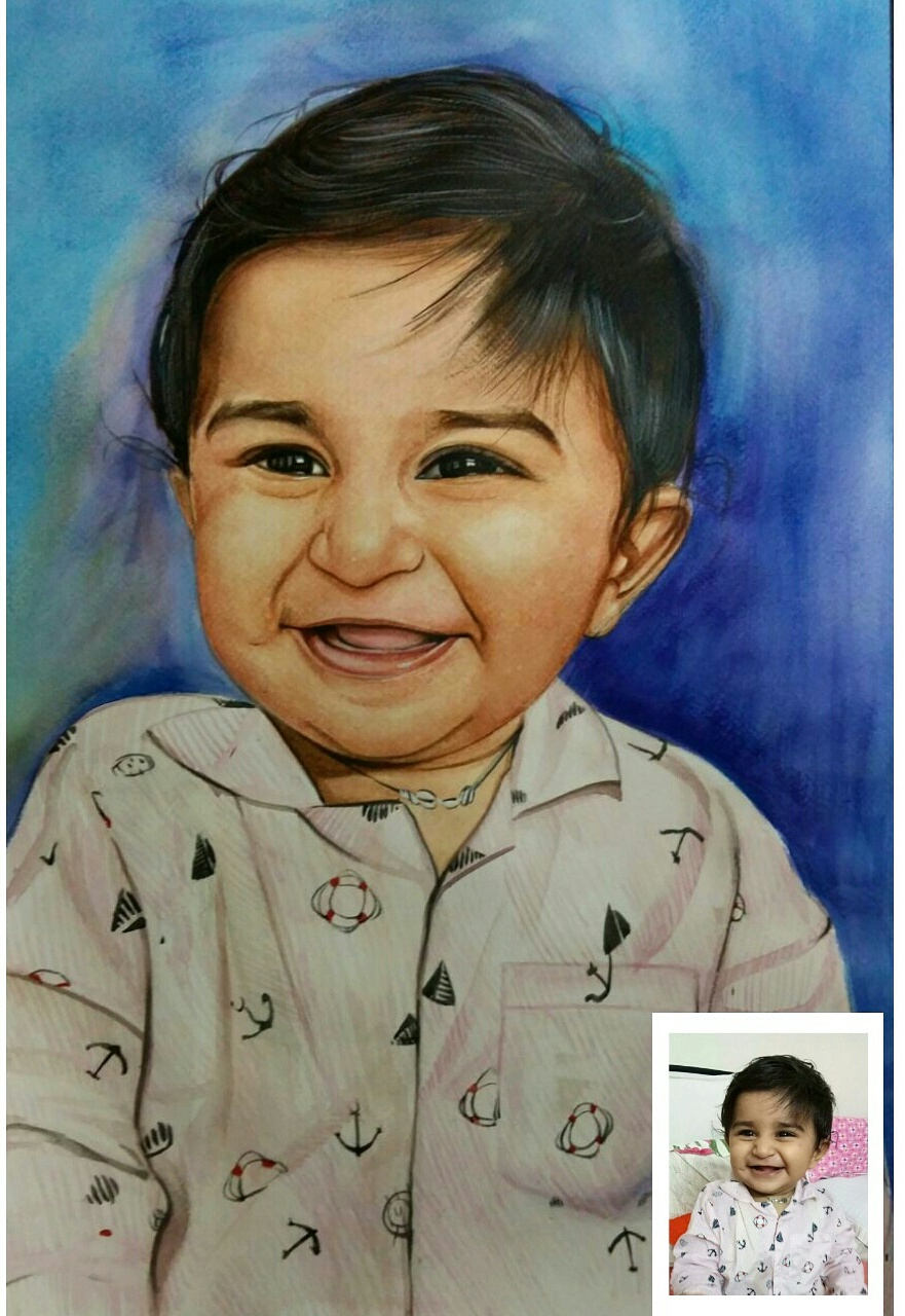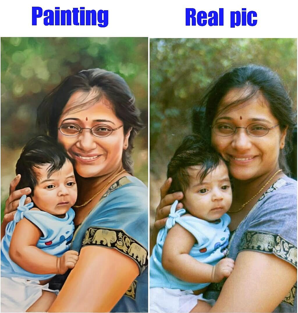 Authentic 100% Handmade Baby Oil Painting from Photo made by the professional portrait artists. Each piece is unique with even the utmost attention to minute details. A boon to the artistic world and definitely the best gift for the New parents to adorn their house walls with a human-made real-life painting embracing their love.