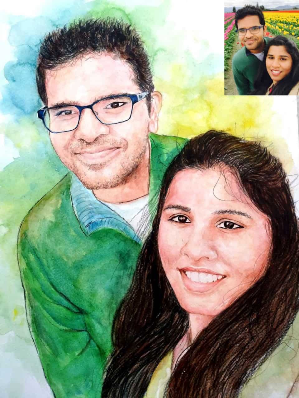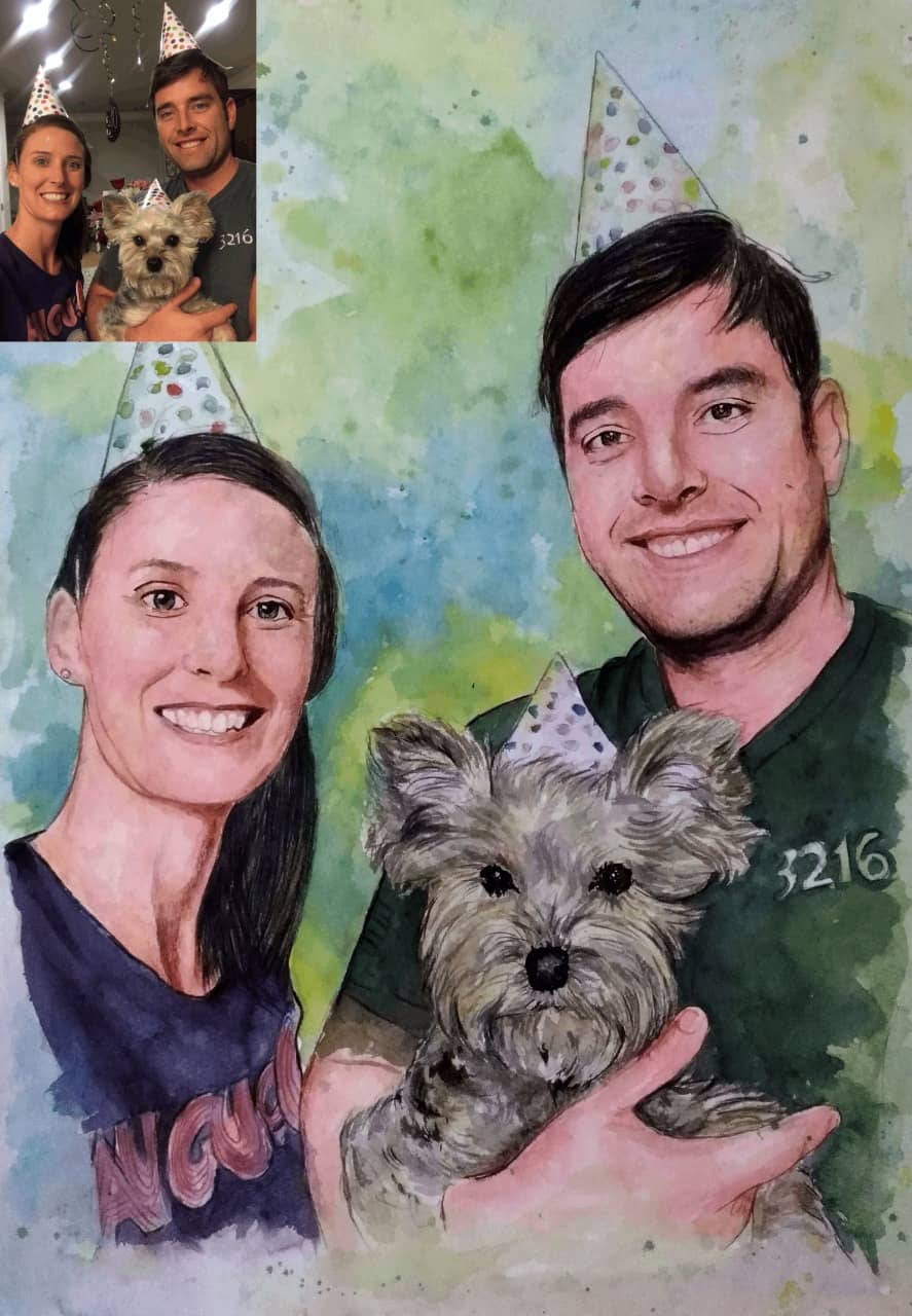 Authentic 100% Handmade Watercolor Painting from Photo made by the professional portrait artists. Each piece is unique & made with even the utmost attention to minute details.